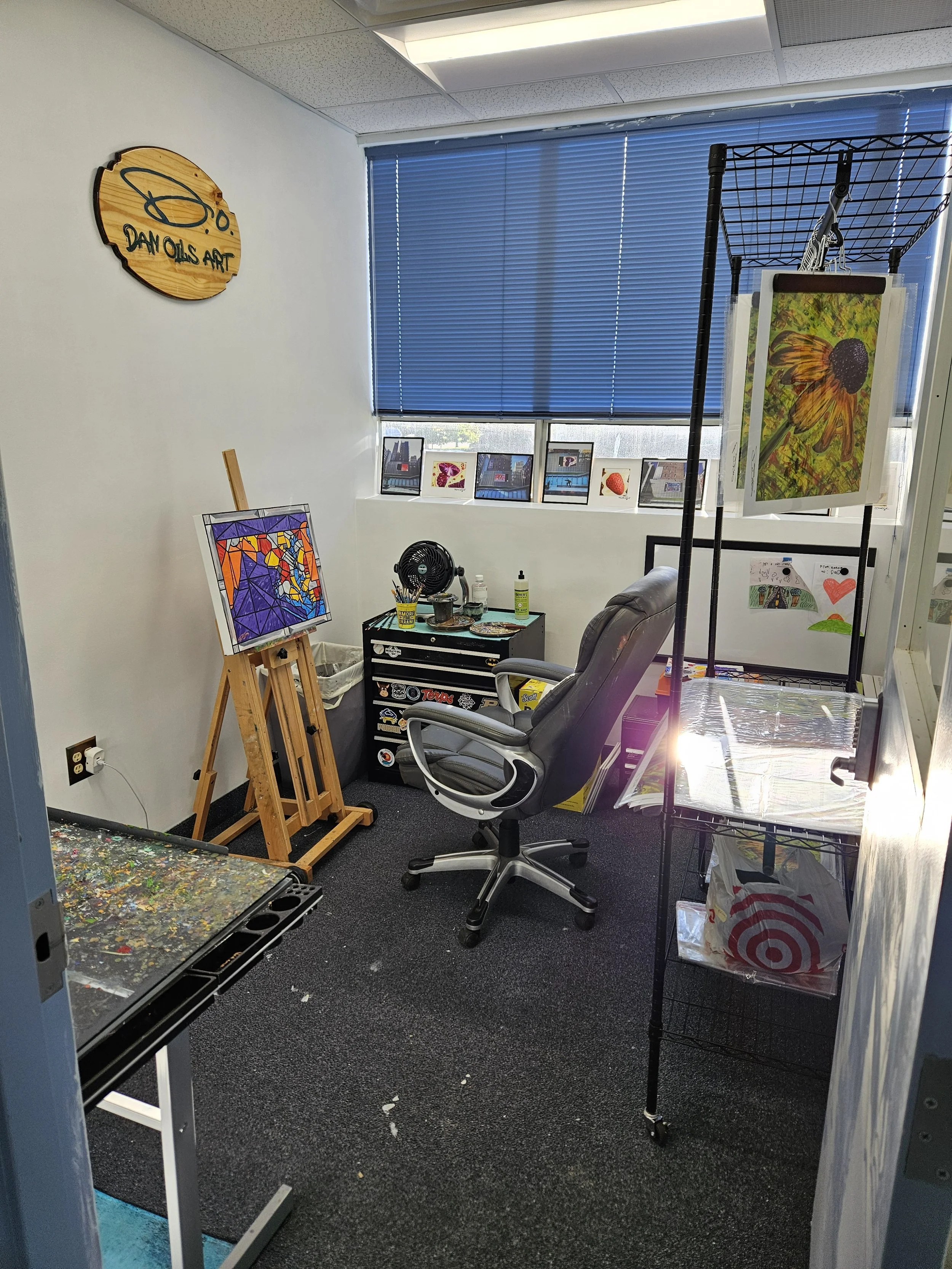 From painting in my basement amidst my children’s toys, to working in a converted enclosed trailer, to painting at the YMCA Arts Center, to my current location at Artspiration, I’ve created art in a few unique spaces.
